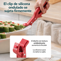 Su mango ergonómico y su mecanismo de sujeción firme te brindan un control total en cada uso. Sin deslizamientos ni movimientos inseguros: solo un agarre firme cada vez que necesites levantar o mover alimentos y recipientes calientes.Cocina de forma más fluida y segura, con comodidad y total confianza.