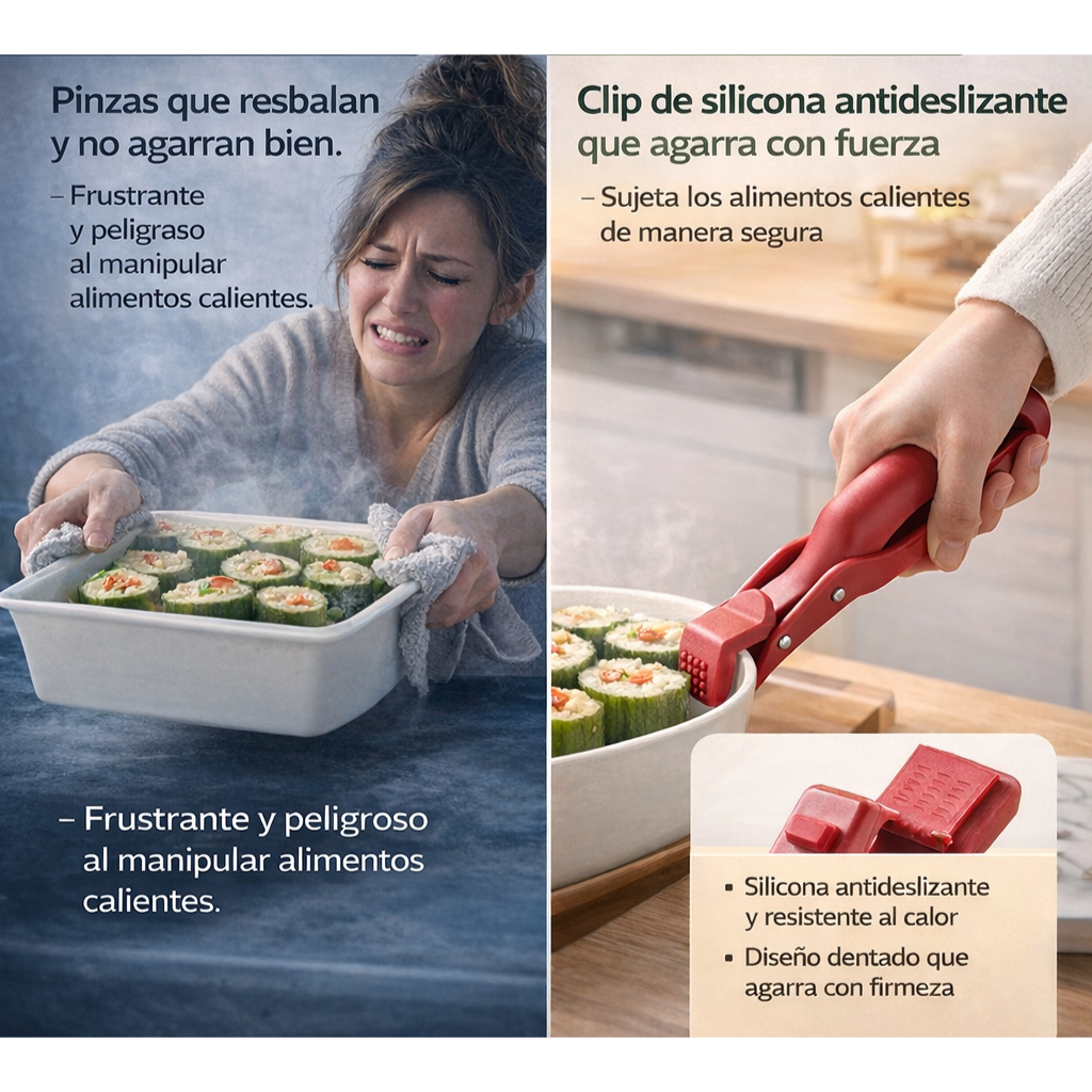 Ya sea que estés manipulando alimentos calientes, volteando piezas a altas temperaturas o retirando recipientes del fuego, la Pinza Palanca protege tus manos y mantiene un agarre seguro. Su diseño resistente al calor te permite concentrarte en cocinar, sin preocuparte por quemaduras.Disfruta la libertad de cocinar a altas temperaturas con total confianza, sin guantes incómodos ni movimientos inseguros.